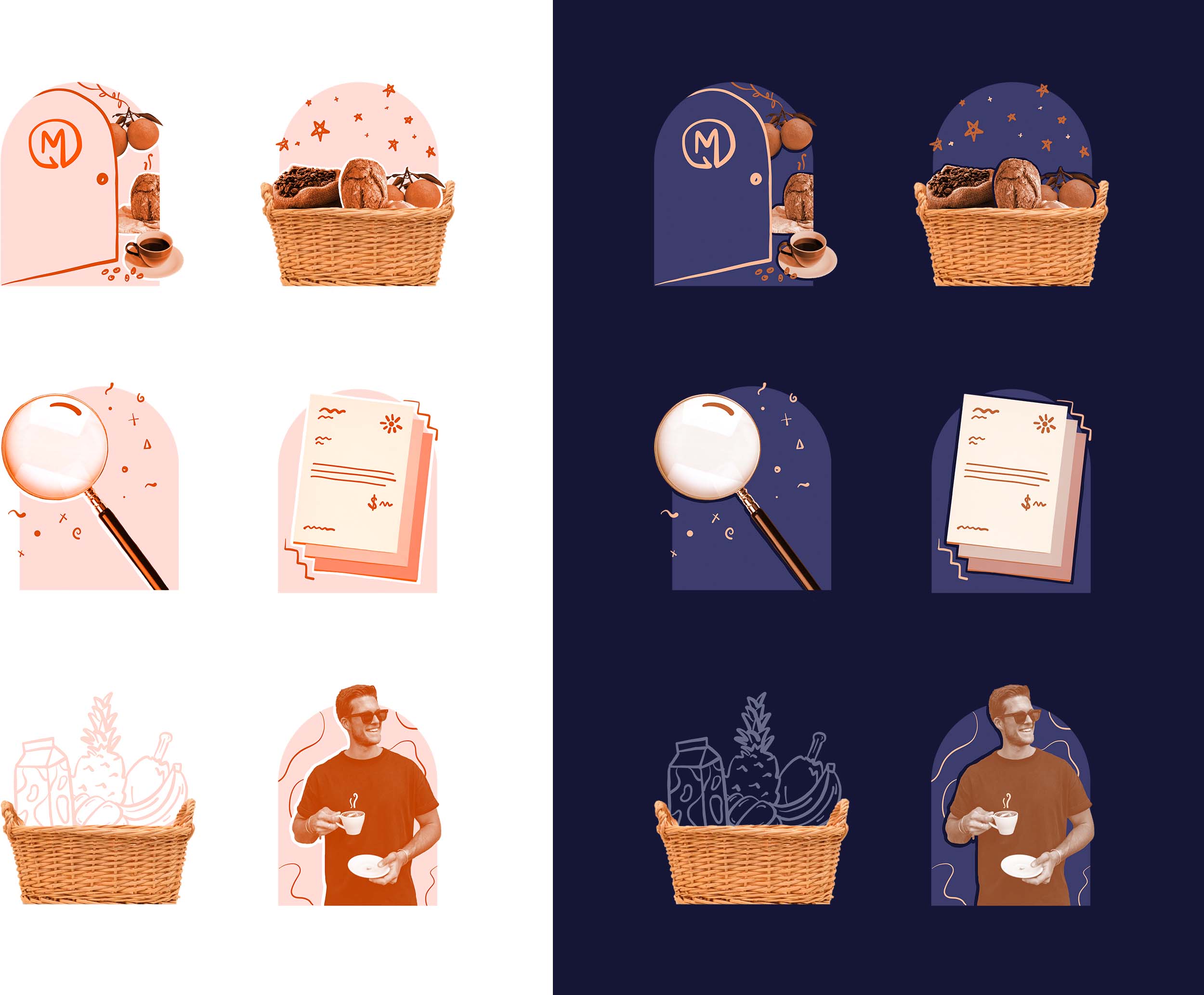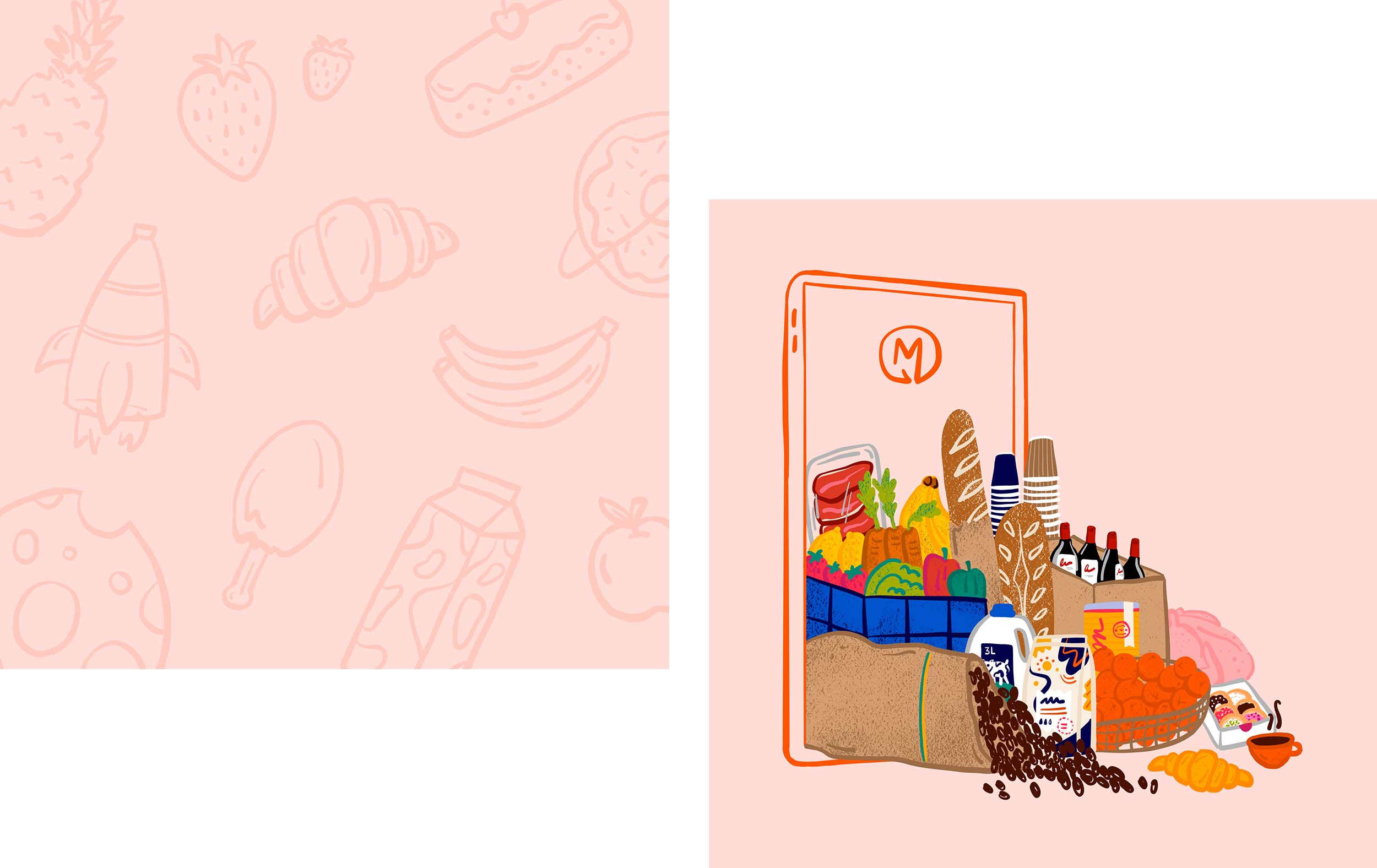 I introduced a distinct illustration style to Ordermentum, which was key to standing out amongst our competitors and representing the friendly, human aspect of hospo. When illustrating people, the idea was to draw our actual customers rather than just generic characters so that we were truly unique and genuine in how we presented the brand. I emphasised this with extra playful details, like tattoos or a tea towel hanging from an apron pocket, or in the illustrations of produce, I added colourful coffee packaging and specific brands of wine or milk.
