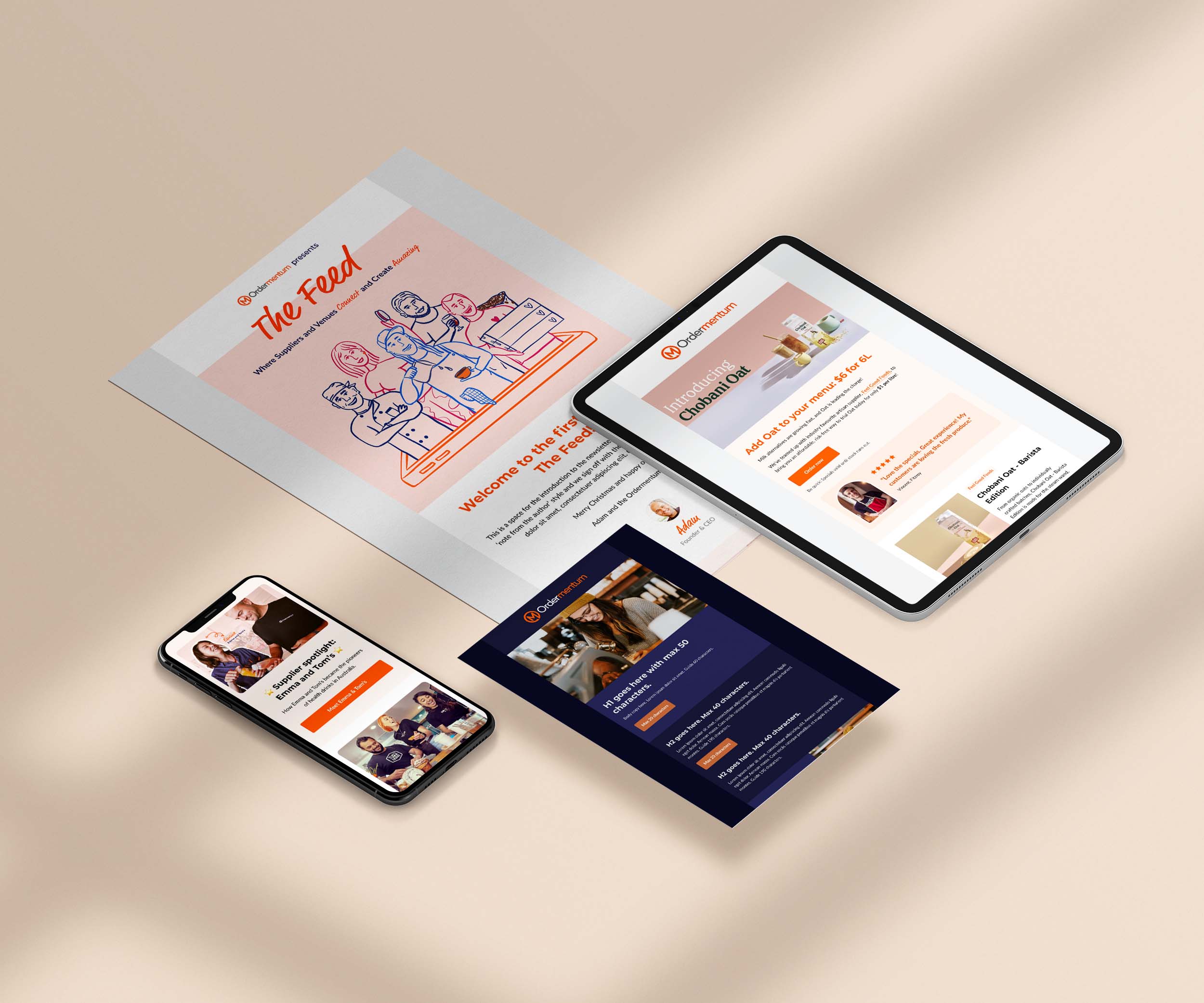 The email template for The Feed joined a whole suite of rebranded templates for marketing and system generated emails, so that every message sent out was uniquely and recognisably Ordermentum.